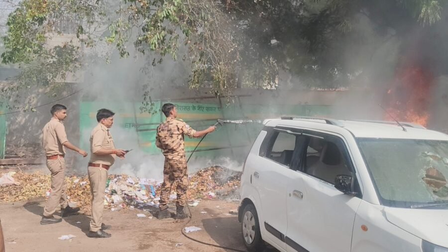 दीवानी न्यायालय परिसर के गेट नंबर एक स्थित वाहन पार्किंग में सोमवार दोपहर चिलचिलाती धूप के बीच अचानक आग लग गई। कूड़े के ढेर से उठी चिंगारी ने देखते ही देखते विकराल रूप धारण कर लिया, जिसकी चपेट में आने से वहां खड़ी पांच कारें झुलस गईं।