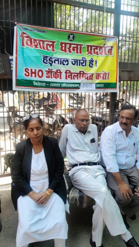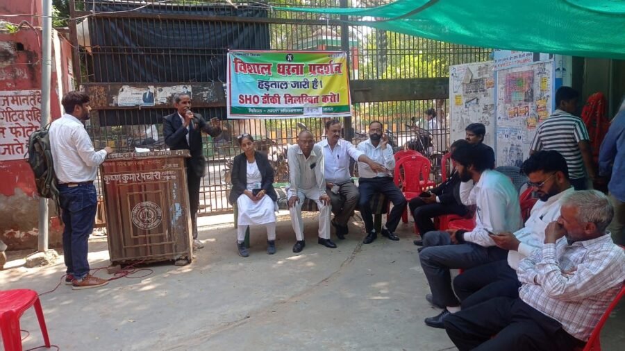 पुलिस की कथित अभद्रता के खिलाफ आगरा के अधिवक्ताओं का धरना जारी