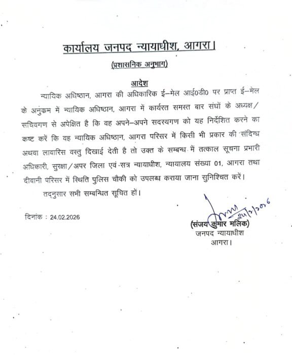 ताजनगरी के दीवानी न्यायालय परिसर में आज उस समय अफरा-तफरी मच गई, जब जिला जज (DJ) कोर्ट को एक धमकी भरा ईमेल प्राप्त हुआ।