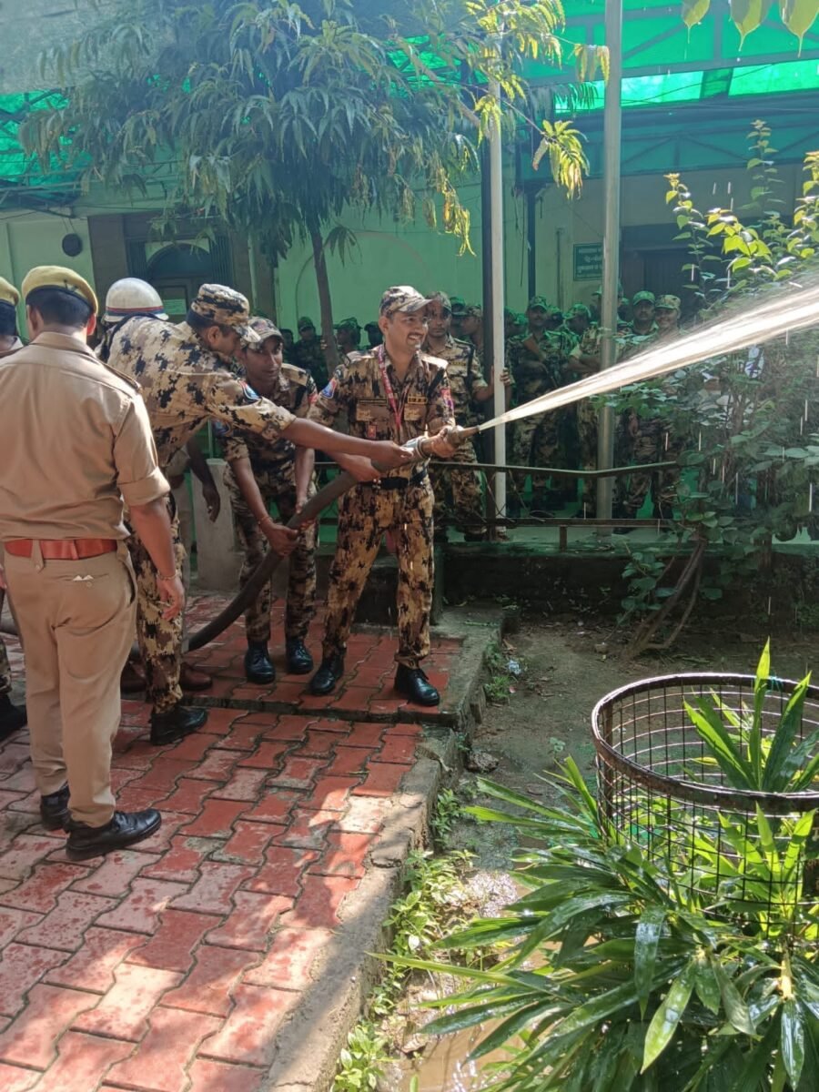 आग से बचाव हेतु अग्निशमन विभाग द्वारा डेमो करके दिखाया गया एवं न्यायालय सुरक्षा आगरा के प्रभारी निरीक्षक मुकेश यादव द्वारा आपातकालीन स्थिति में त्वरित कार्यवाही हेतु एसएसएफ के जवानों आवश्यक दिशा निर्देश दिए गए एवं जवानों द्वारा मॉक ड्रिल किया गया।